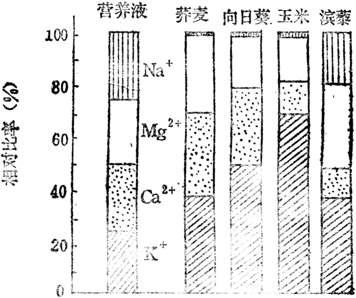 图1 不同植物对离子的选择吸收