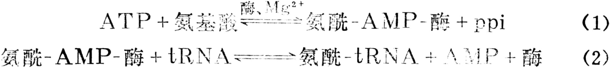 活化反应在专一的氨酰-tRNA合成酶催化下进行。活化了的氨基酸与tRNA形成氨酰-tRNA,该反应在细胞质内完成,活化反应分两步进行: