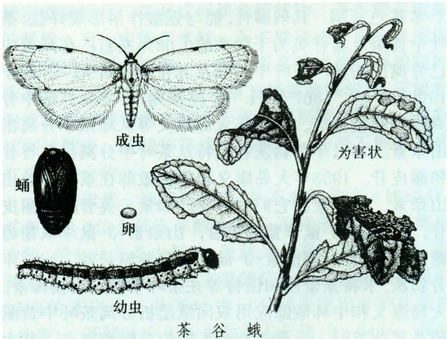 茶树芽叶害虫之一,又名茶木蛾,属鳞翅目谷蛾科,学名为Agrio-phara rhombata Meyr。