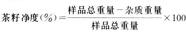 取一定量的茶籽样品,称其重量,拣去夹杂物后,留下的种子重量占总重量的百分率,称为茶籽净度。