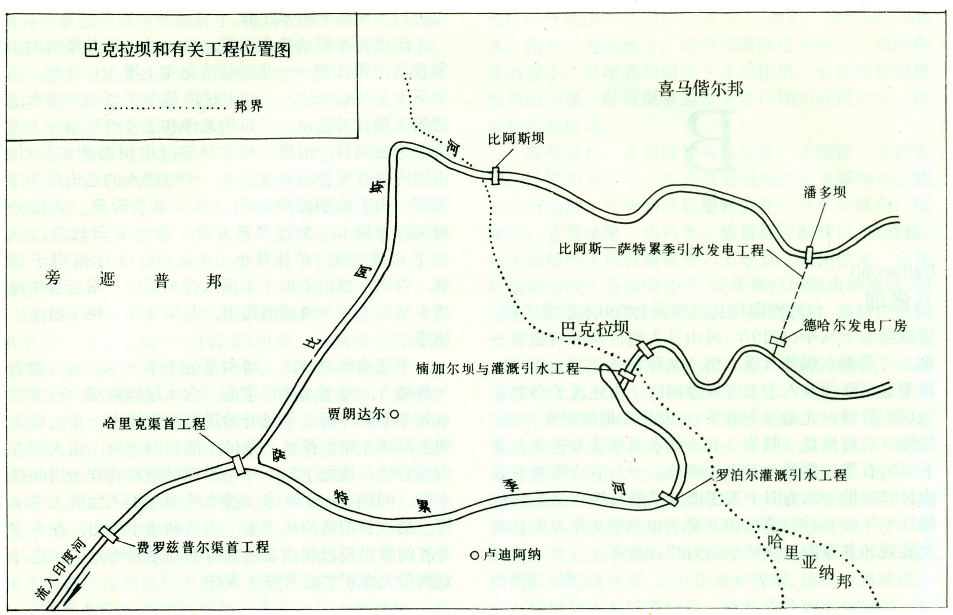 巴克拉坝和有关工程位置图