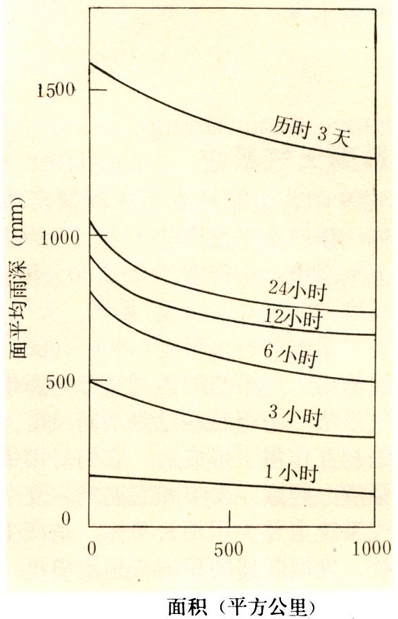 在分析时面深关系时,可将时面深关系分解为各种特定面积的时深(历时~雨深)关系或各种特定历时的面深(面积~雨深)关系。一般先确定几种历时,然后对每一种历时的暴雨作面深关系的分析。在一个地区内,将多次暴雨的动点动面时面深关系通过综合分析,可得地区综合的时面深关系。对大量面积不等的实际或概化几何形状的固定流域或地区作各历时暴雨的定点定面分析后,可作地区综合的定点定面时面深关系。