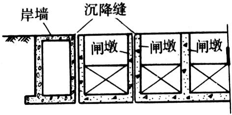 为减小建筑物由于地基不均匀沉降而产生的应力,防止发生危害性裂缝,将建筑物分段修建所形成的人工缝。并可兼作永久性温度缝。在地基压缩性有较大差异或荷载分布突变的区段,建筑物容易产生明显的不均匀沉降,应设置沉降缝。水闸的岸墙与边墩、铺盖与闸室、翼墙与边墩等交接部位,以及多孔水闸的闸室分段处,均须设置沉降缝(见图)。重力坝沿坝轴线每隔一定距离设置垂直于坝轴线的贯通缝,它既是沉降缝,也是永久性温度缝。需要防渗的沉降缝,缝内设止水。分缝间距及分缝位置除与上述地基和荷载条件有关外,还须考虑建筑物的结构型式和整体性要求,沉降缝的型式及止水构造见坝体分缝及止水。