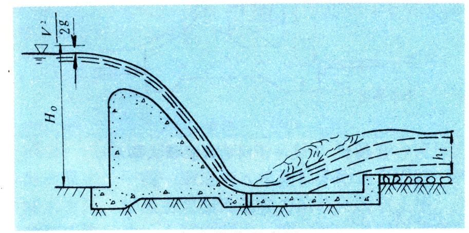 使水流在适当位置产生水跃以消杀能量的消能措施。泄水建筑物下游的急流在收缩断面紧下游产生完整水跃,通过旋滚、掺气、摩擦、撞击等作用消耗能量,以减轻对下游河床和两岸的冲刷。常用于水头不太高、地质条件较差的情况。底流消能具有运行可靠,消能效果较好,下游流态稳定,涌浪较小,对河床及两岸的淘刷较轻,对通航发电影响较小,基本无雾化等很多优点;但土石方开挖量和混凝土浇筑量一般都较大。