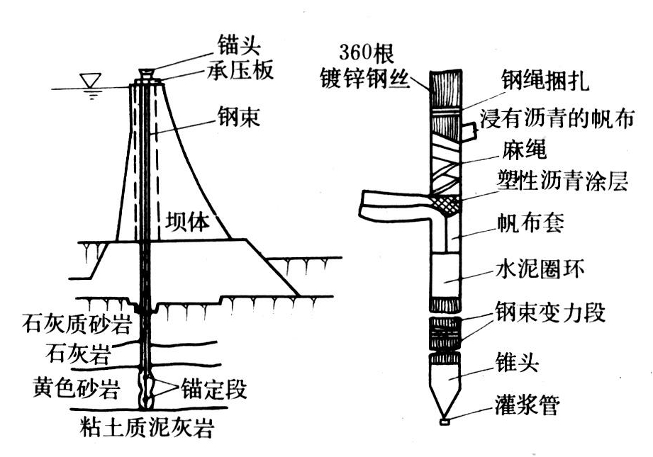 图2 谢尔法砌石重力坝锚索锚固示意图