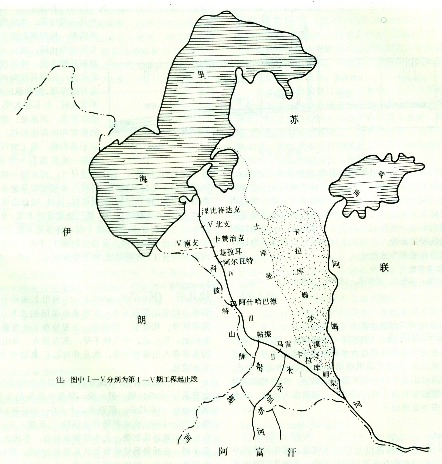 引水至涅比特达克西部地区,南支引水到伊朗边境。1979年已建到基孜耳一阿尔瓦特,总长1001公里。估计还要5~10年才全部完工。