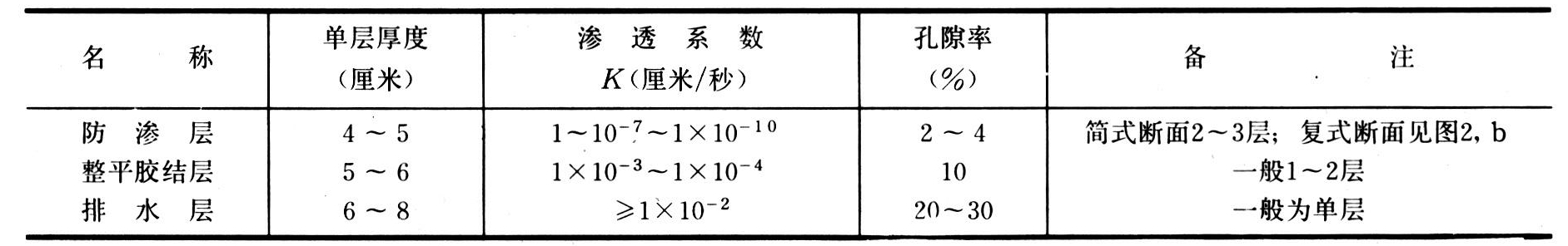 沥青混凝土防渗面板,系粘弹性薄板结构,它的厚度现阶段只能就抗渗性、耐久性、水压力、波浪冲击和斜坡稳定性加以核算,然后参照已成工程抉择。一般要求如表所示。沥青面板下的垫层有干砌块石硬垫层和砂卵石或碎石软垫层两种。为便于摊铺机的行走,中国大都采用硬垫层。湖北车坝一级电站沥青混凝土面板石碴坝高66.5米,采用了砂卵石、碎石软垫层,为了摊铺机的行走并整平坝面,以厚10厘米的无砂混凝土代替了最下一层6厘米厚的沥青混凝土整平胶结层。沥青混凝土面板往往以滑动接头方式搭接于坝上游、两岸基础接触周缘的混凝土基座上(图3,a、d),基座宽度一般为1/10~1/20水头,对于重要的工程,还在基座内设灌浆检查廊道。通常采用锚筋与基岩相连接。基座下缘的帷幕灌浆一般采用低压1~2公斤/平方厘米。如果河床覆盖层很厚,则沥青面板以图 3b或图3c所示形式通过混凝土防渗墙与基岩相连接。沥青混凝土面板的施工,中国及其它各国大都采用碾压法,一些小型工程也有采用灌注法、预制法及铺席法等。