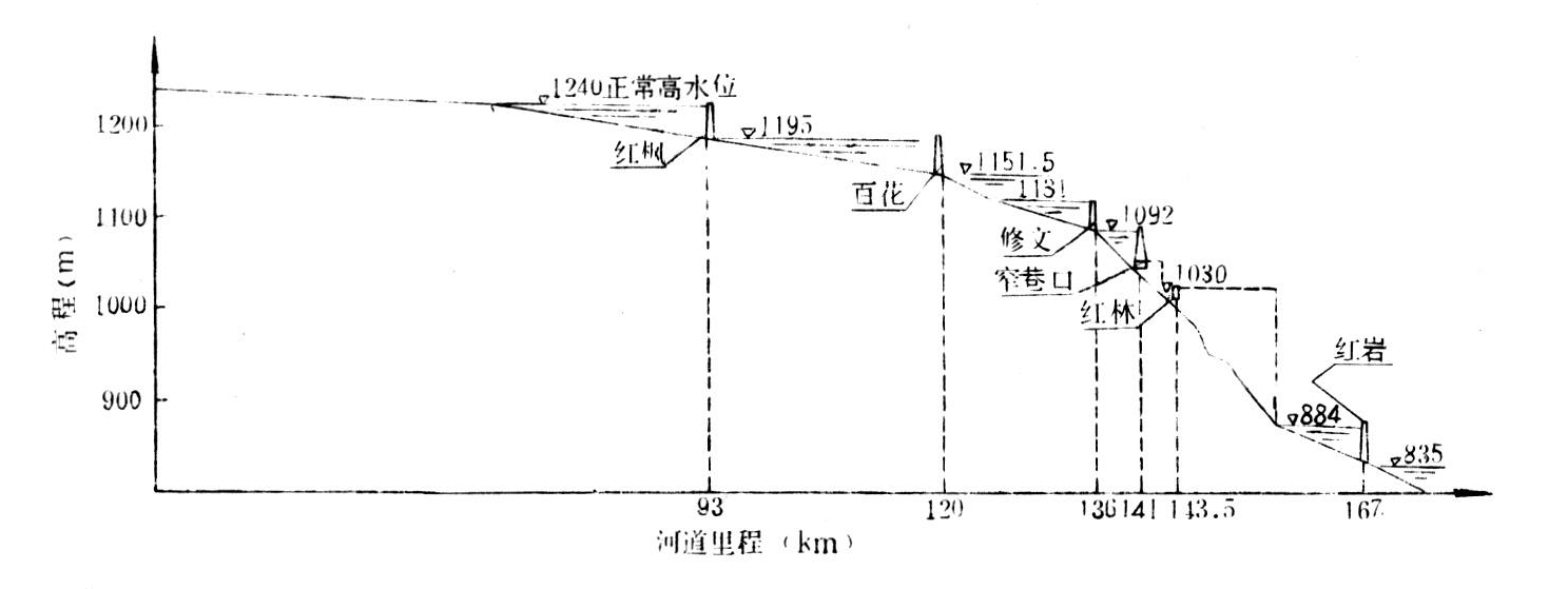 猫跳河梯级水电站纵剖面图