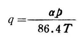 式中 q为设计排水模数(米3·秒-1·公里-2);p为设计暴雨量(毫米);α为径流系数,即径流量与降雨量的比值;T为设计排水天数,其值等于或小于作物耐淹能力。