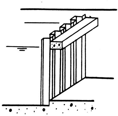 由若干根独立的竖梁成排地封闭水道孔口以拦阻水流的闸门,又称针坝或针堰(见图)。竖梁下端一般搁支在底坎上,上端支承在搁于栈架或墩墙顶部的横梁上。排针闸门于19世纪出现在法国,曾在欧洲大陆盛行一时,布置和构造形式很多。由于排针闸门漏水量大,操作极为不便,目前已不多见。