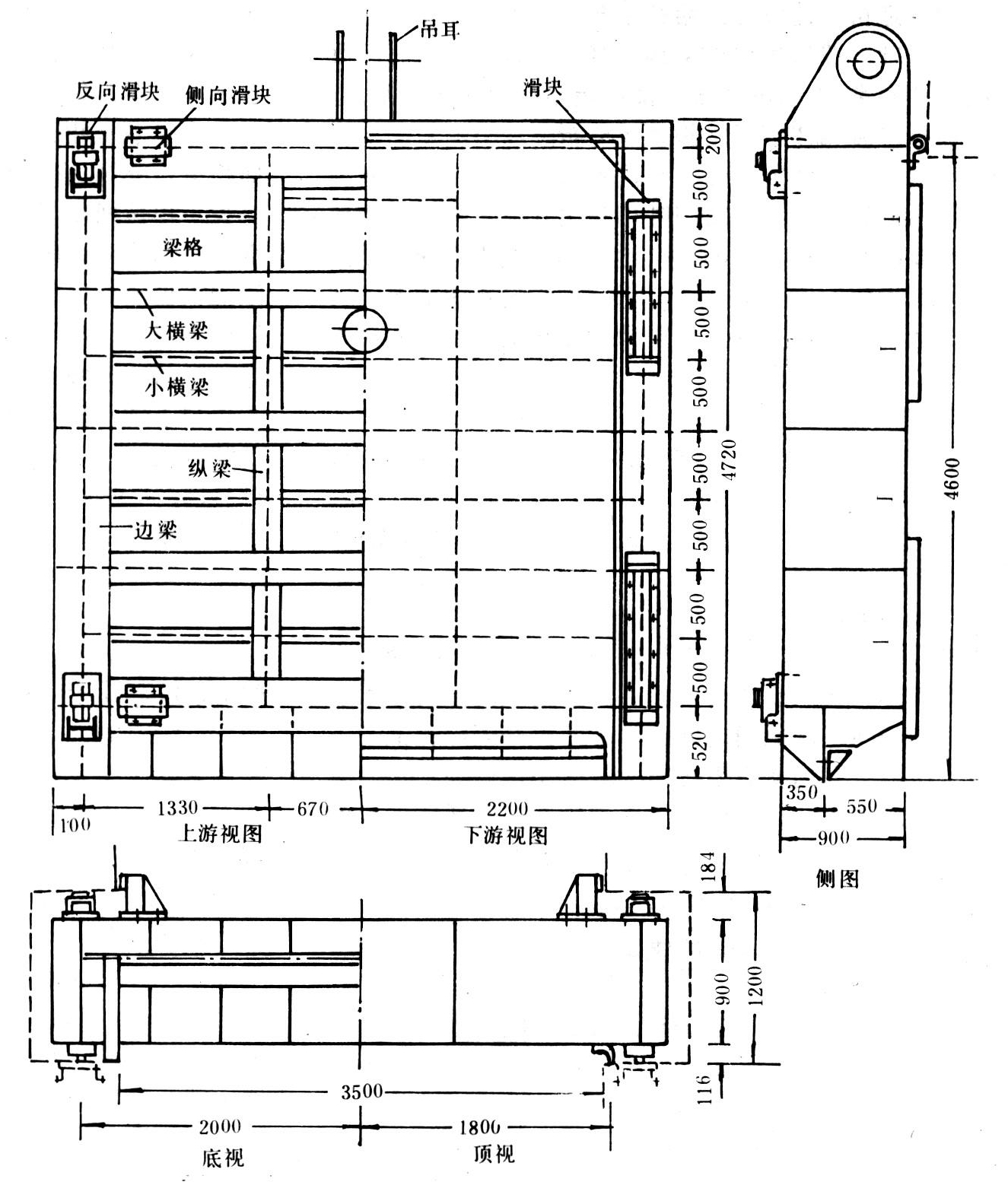 门叶一般采用梁板结构,其分析计算大都按平面结构体系考虑,自从有限元法和电子计算机出现后,正在逐步过渡到按空间结构体系分析。