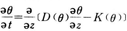 式中θ为土壤含水量;D(θ)为土壤水扩散度:z为竖直坐标,原点在土表面,竖直向下;K(θ)为土壤水水力传导度。
