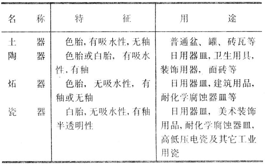 以粘土或粘土与其它材料混合,经过制坯、干坯和焙烧而得的一种人造石材,亦称陶瓷材料。通常分为四类:土器、陶器、炻器和瓷器。