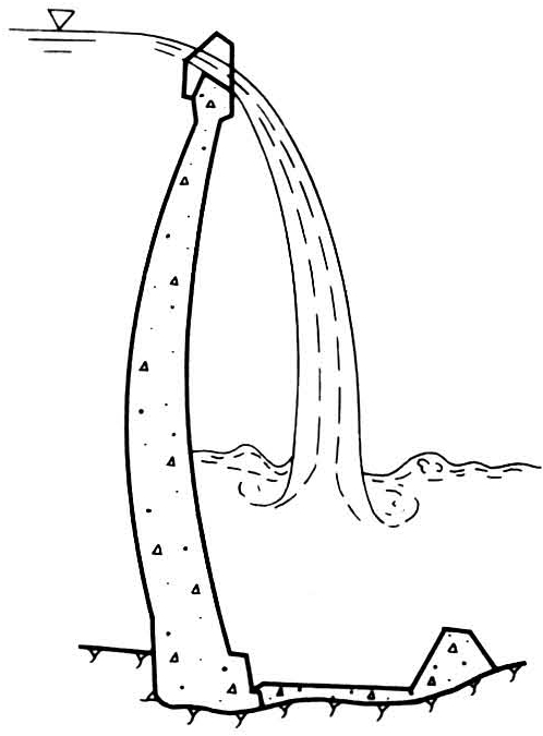 水平向和竖向都弯曲的拱坝。无论厚拱坝还是均可采用双向弯曲形式。20世纪40年代,法国、意大利等国首先采用双曲拱坝,以后,其他国家也相继采用。中国已建的坝高15米以上近六百座的拱坝中,双曲拱坝约占一半。双曲拱坝的优点之一是应力分布较好。下半部的拱应力,将随水平拱曲率的增大而降低;河中竖向剖面向下游弯曲后,可以减小两岸向上游的倒悬度,也有助于改善拱坝下半部的应力(见图)。