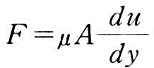 由牛顿在1686年根据试验提出的液体内摩擦定律,叫做牛顿定律。它指出在液体的二维平行直线运动中,速度u的方向为x,垂直x的方向为y(见图1)。流层间的内摩擦力F的大小与液体的性质有关,并与流速梯度和接触面积A成正比,而与接触面上的压力无关。即: