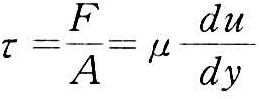 单位面积上的内摩擦力,(粘滞切应力)为: