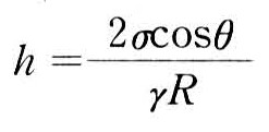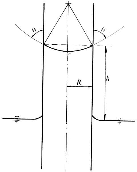 式中θ为水面与管中心线形成的接触角。