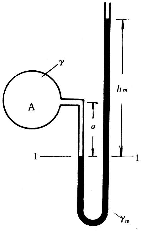 压强的量测 可借直接安装于水流流道壁上的测压计敏感元件进行测定,也可在流道壁上钻孔用连通管引出进行测定。方法有:①水力测压法:利用连通器原理和液柱高度反映压强的特性,用测压管测压强(见图2)或用比压计测两点的压强差(见图3)。②机械测压法:利用弹性敏感元件在压力作用下发生变形的特性,用杠杆或齿轮将变形放大转换为指针的偏转,以便由偏转角度计量压强(见图4)。③电学测压法:利用传感器将压强变化转换成电学量的变化,然后应用电子仪器加以测定,再根据实验确定的校正系数折算出压强变化。
