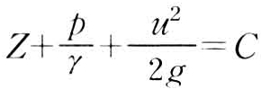 上式称为伯诺里方程,式中C为常数。它是能量守恒定律在水流运动中的具体体现。表示水流中单位重量液体的位能(z)、压能()和动能(