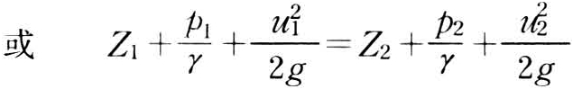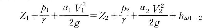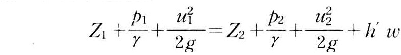 式中 h′w代表水流质点由1流动到2间单位重量液体的能量损失。对于实际液体恒定总流的伯诺里方程式,其形式如下: