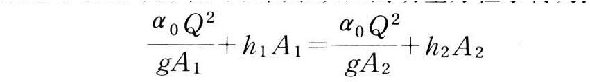 式中 Q为流量;α0为动量修正系数;A1和A2分别为跃前和跃后断面的过水断面积;g为重力加速度。水跃基本方程式把水跃前后断面的一些水力要素连系起来,当流量Q及断面形状固定时,该式的左边和右边各项都仅仅是水深h的函数,满足水跃基本方程的跃前和跃后水深称为共轭水深。