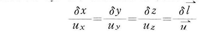 用欧拉法研究流动时常采用流线簇来表示流动情况。流线是流场中一条设想的曲线,同一瞬时位于曲线上所有各质点的速度矢量都在该质点所在位置与曲线相切。在流线上取一线段,在直角坐标系中其分量为δx、δy、δz,则流线方程可表示成: