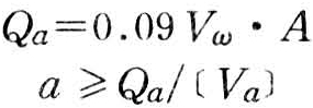 式中 a为通气孔断面面积(平方米);Qa为通气量(米3/秒);Vω为闸门孔口的水流流速(米/秒);A为闸门后管道面积(米2);〔Va〕为通气孔内的允许风速,一般取用40米/秒,对小型闸门,可取50米/秒。