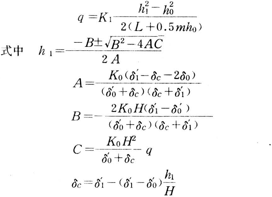 水力学法以达西定律和杜平假定为基础,后者假定在同一垂线上的水头均相同,这种方法对渗流场的边界条件,也作了简化假定,计算结果能达到一定精度,工程实践中得到了广泛的应用。现列举3种典型情况如下: