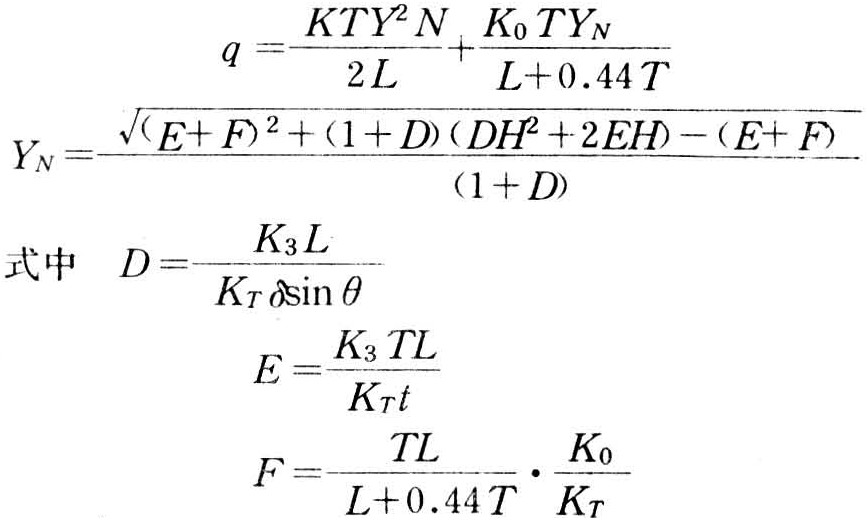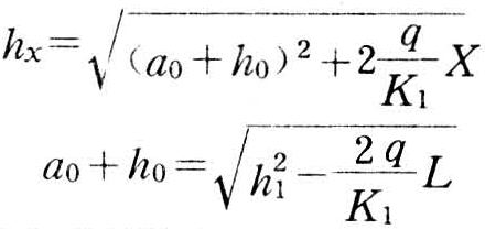 当K0=KT时,浸润线的位置可按下式求得: