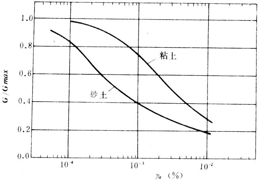 当剪应变大于10-2%以后,土呈非线性弹塑性性质。此时剪切模量随动剪应变的增大而减小。