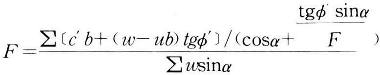 上式的等号两侧都有F,需迭代数次才能算出F值。在极限平衡法中,以摩根斯吞和普拉斯法最为严格,但计算工作量大,算得的F值与简化毕肖普法的结果很接近。