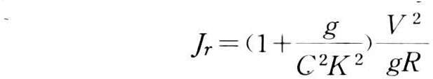 弯道环流水力特征值的计算包括确定横向水面坡降及横向流速等内容。横向水面坡降Jr的表达式为: