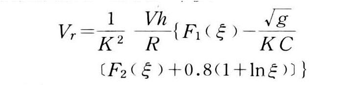 在弯道半径较大的宽浅河渠中,可近似按下式确定横向(水平)流速Vr: