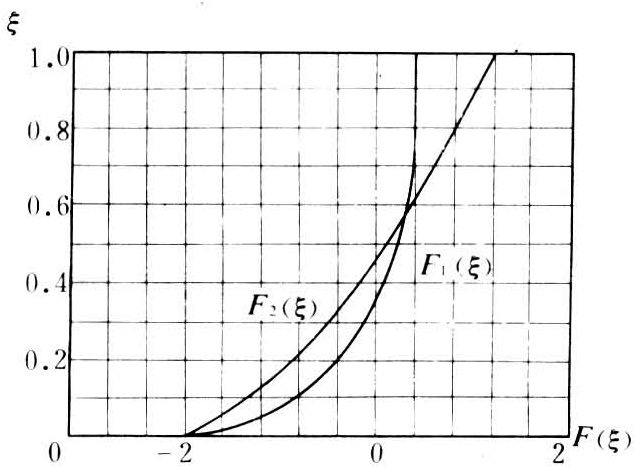 以上各式中:g为重力加速度;V为计算点沿水深的纵向流速平均值;R为弯道半径;C为谢才系数;K为卡曼常数,取0.4~0.5;h为计算点垂线上的总水深;ξ为相对水深,ξ=Z/h;Z为计算点在河底以上的高度;F1(ξ)、F2(ξ)分别为ξ的函数,可根据ξ值由图2所示曲线查得。