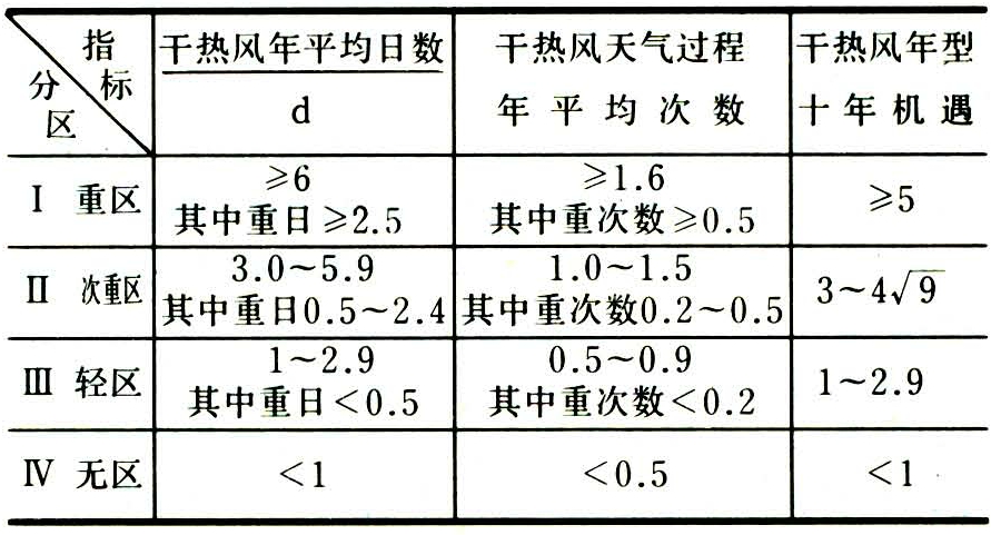 表2 干热风气候区划分区指标
