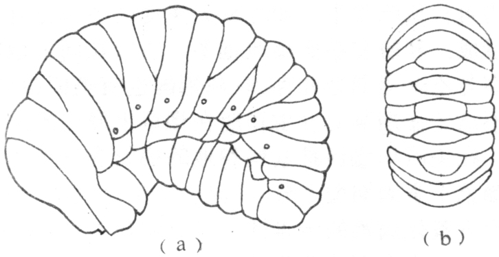 近端外缘有一短而钝的齿(图1)。幼虫具背线(图2)。 图1 豌豆象 图2 蚕豆象第四龄幼虫的侧面观 年生1代。成虫在豆粒中或仓内包装缝隙处越冬,也有少数在田间作物的遗株、野草、或砖石下越冬,翌年春天飞往田间产卵于蚕豆荚上。每雌虫产卵35~40粒,初孵幼虫即钻入豆粒为害,随豆粒成熟收获后带入仓库,直至羽化为成虫,从卵发育为成虫需时90~100天。