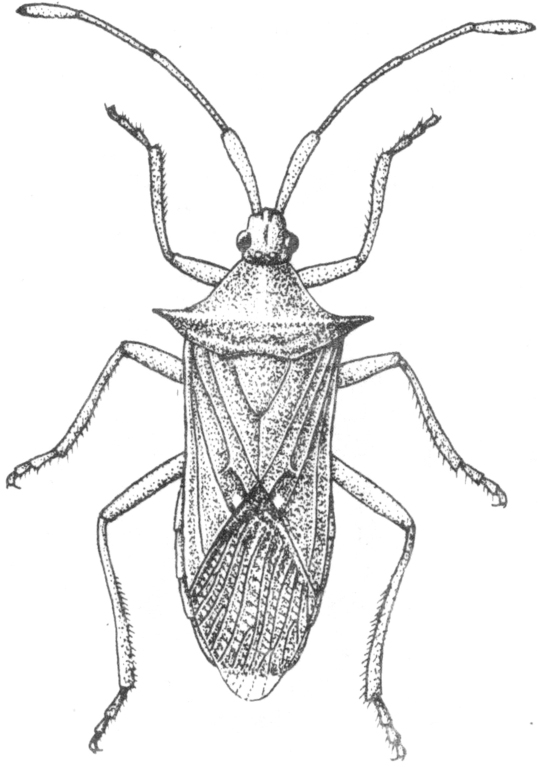 水稻等穗期刺吸害虫,又名稻针缘蝽、黑棘缘蝽。学名Cletus punctiger Dallas。半翅目,缘蝽科。印度、中国均有分布,在中国南方稻区密度较大。主要为害水稻、麦类、粟、高粱、玉米、蚕豆、大豆等作物,还取食狗尾草、稗草等禾本科杂草。成虫和若虫常聚集在穗部及嫩荚上吸食,造成秕粒。成虫体长9.5~11毫米,宽2.8~3.5毫米。体形狭长,黄褐至茶褐色,密布刻点。触角第四节纺锤形。前胸背板侧角刺细长,略向上翘,末端黑。前翅革片缘浅色,近内角处有一淡赭色斑点。卵长1.3~1.4毫米,宽0.8毫米,略呈梭形,中央有一圆形浅凹;卵壳光滑发亮;假卵盖周缘隐约可见数枚小粒状的呼吸一精孔突。若虫共5龄,3龄前长椭圆形,4龄后略呈梭形。5龄体长8~9.1毫米,宽3.1~3.4毫米,黄褐带绿色,腹部多红色毛点;前胸背板侧角明显伸出,末端后指;前翅芽伸达第四腹节前缘(见图)。