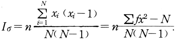 森下正明1959年提出。其最大优点是分布型与抽样数、抽样单位大小均无关。其公式为: