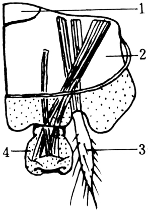 基肢节在基部和体壁相连,其余部分统称为端肢节;基肢节的内叶为基内叶(basendite),其外叶为上肢节(epipodite)(图2)。