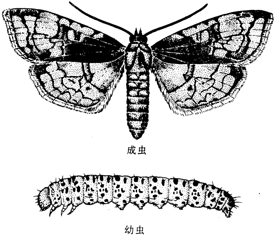 南方甘薯成瘿害虫。又名甘薯大象甲。学名Alcidodes waltoni(Boheman)。鞘翅目,象虫科。分布日本、越南、斯里兰卡、缅甸及中国长江以南。为害甘薯、蕹菜、大豆、向日葵、桑、柑橘、马铃薯等作物,但幼虫仅能取食甘薯、蕹菜等旋花科植物。成虫嗜食甘薯嫩茎、嫩梢、叶柄,常致折断枯死,幼虫常在薯藤基部钻蛀并藏身其中,被害茎秆膨大成虫瘿,以致瘿上部分生长不良,主茎受害则明显影响结薯。成虫体长9.5~11毫米,黑或黑褐色。体表被有灰褐、灰土黄或红棕色鳞毛。头小、管状喙微弯曲;触角膝形,索节共2节,最长,末端4节膨大,前胸背板表面密生圆形粒状突起,中间有一鳞片组成的纵纹。每鞘翅上有纵沟10条,沟内刻点大而明显。腿节各有一弯齿,其前端无小齿。雄虫腹末节腹板近后缘有一凹陷,上密生长毛,后缘鳞片长而密;雌虫腹末节无凹陷,后缘鳞毛短而稀。卵圆形,淡黄色,卵壳略软而光滑。初龄时幼虫胸、腹部淡紫褐色,2、3龄以后变为乳白,末龄体长1.5~1.8毫米,肥壮多皱折,头红褐色有光泽。蛹长7.8~10.9毫米,淡黄或淡黄褐色。头顶具褐色乳状突一对,腹部第一至七节的背面后缘具一列小瘤突,末节端部具刺突一对(见图)。