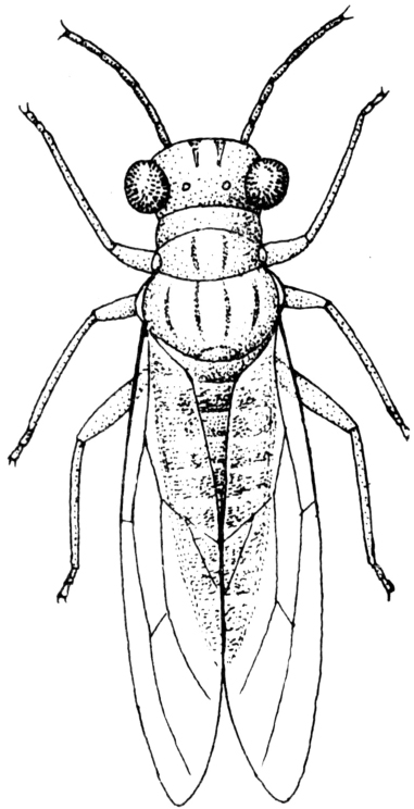 学名Pseudophacopteron canarium Yang et Li。在福建福州、莆田等橄榄产区发生普遍,广西的黄橄榄树也有发生。成虫体长1.0~1.2毫米,黄色,触角黑色与淡黄色相间,末端分2叉,前胸背板有2深黄色纹,中胸背板有4条深黄色纵纹,在前翅的翅脉上布有10个黑色斑点。腹部两侧黑褐色(图1)。卵鲜黄色,杧果形。若虫黄色,体周缘有细毛。若虫和成虫刺吸为害新梢嫩叶。卵散产于嫩叶的主脉及其两侧附近,一张嫩叶上常有卵100余粒。若虫密集为害,4~7月发生,5月盛发,春梢受害最重,产量大减。大发生后导致落叶,两三年内不能结果,甚至死树。天敌有黄斑盘瓢虫(Coelophora saucia Mulsant)等。可喷洒对硫磷或乐果等防治。