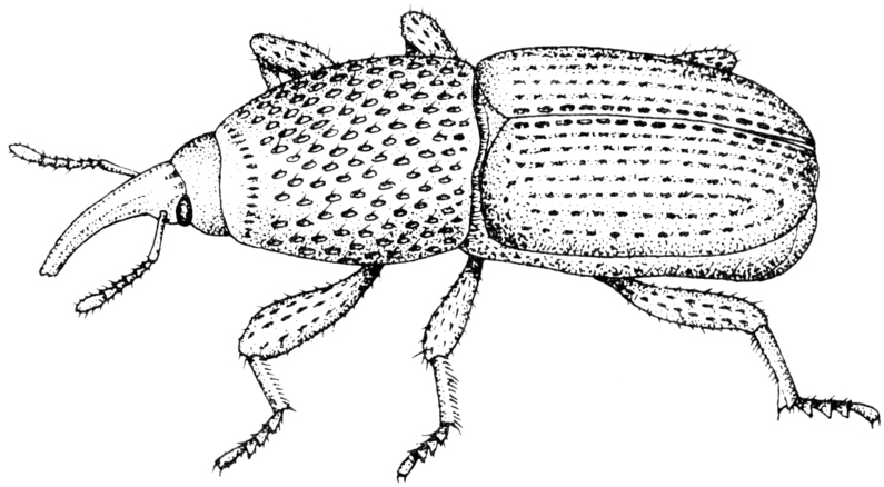 重要初生性贮粮害虫,中国对外检疫对象。学名Sitophilus granarius Linnaeus。鞘翅目,象虫科。原产亚洲或地中海地区,随粮食调运,已成为世界性分布的贮粮害虫。分布于美洲、欧洲大部和苏联,澳大利亚,印度和北非等;中国的新疆及甘肃局部地区亦有分布。寄主有小麦、大麦、燕麦、稻米、稻谷、玉米和高粱等。也为害橡实、栗子、向日葵子。成虫啮食完整粮粒。产卵粮粒内,幼虫孵化后蛀食内部形成空壳,也能为害较大碎粒和结块加工粮。促进螨类和多种霉菌的发展,引起粮食发热发霉变质。