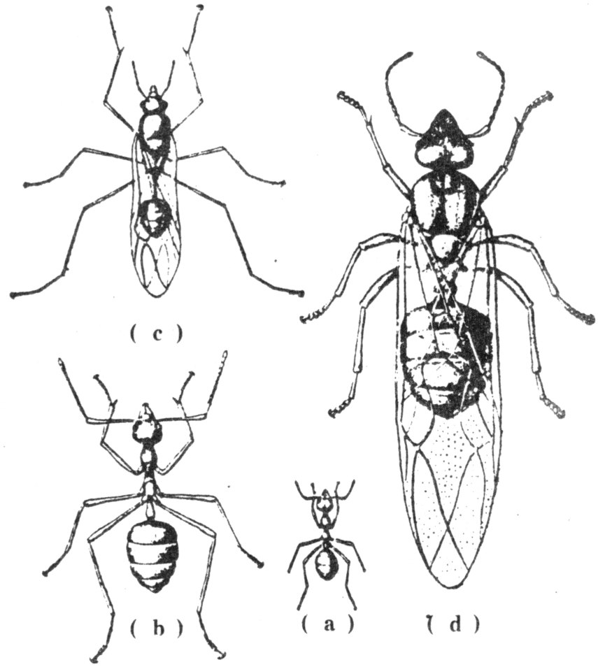 黄猄蚁为社会性昆虫。一群黄猄蚁可有数巢,约数万余只。雌蚁和雄蚁具翅。雌蚁肥大,体长约1.8厘米,色青黄,交配后脱翅。雄蚁体瘦,长约0.8厘米,棕黑色。工蚁缺翅,有大小两种,大工蚁体长0.8~1.1厘米,小工蚁0.4~0.6厘米,淡黄或棕红色,个体色泽与大小因采集地和食料状况而异(图2)。巢中还有蚁卵、幼虫和蛹。黄猄蚁喜温好湿,在阳光下活动加强,一般在气温26~35℃、相对湿度60~90%时最活跃。气温低于12℃时很少出巢,7℃时冻僵,温度继续下降则巢内工蚁成团跌落,此时气温回升尚能全部或部分复甦;若进一步降温,则受冻而死。多在叶巢内产卵,30℃时经18天、24℃时经50天发育为工蚁;16℃时不能孵化。幼虫在33.3℃时不能生长。