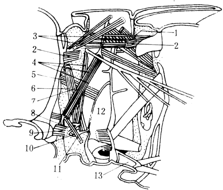 东亚飞蝗前胸右半里面观(示颈部肌肉)