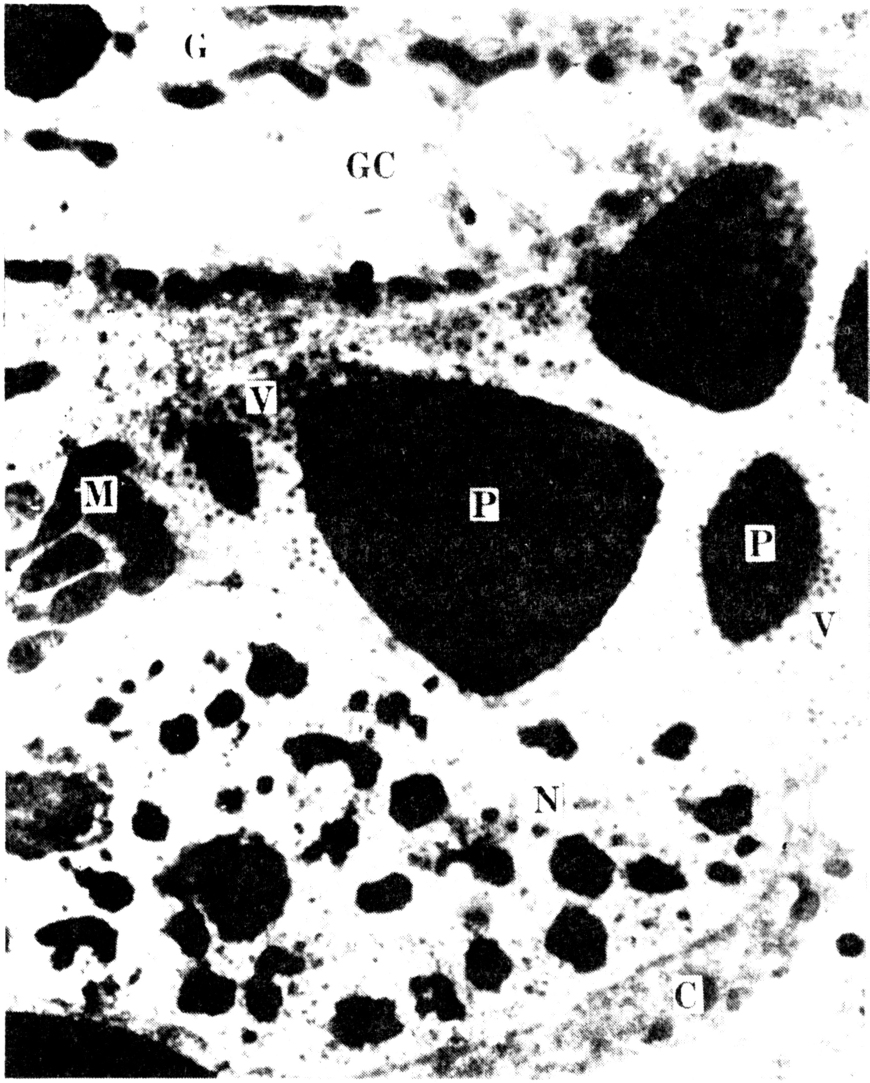图4 黄地老虎感染7日后,中肠柱状细胞(C)和杯状细胞(G)的超薄切片。