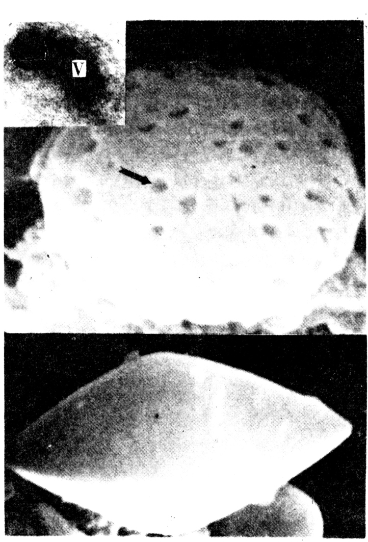 包涵体也是多角体,为不规则的多边形,在不同寄主中其形态、大小差别很大。每个多角体随机包埋着成千个呈正20面体球形的病毒粒子,大小约50~70纳米。通常只感染幼虫中肠的柱状和杯状细胞,在细胞质内复制增殖(图3、4)。黄地老虎感病中肠的围食膜内也有病毒复制现象(为中国首次发现)。CPV的遗传物质是RNA,具有双螺旋结构。罹病幼虫显得头大体小,后期中肠烂,排出的粪便含有大量的多角体。经口和卵传染,在人工饲养的昆虫种群中易发生CPV病。一般发病迟缓,病程较长,但认为CPV是一种有效的杀虫剂。如赤毛虫商品制剂已在日本注册。中国利用赤毛虫CPV和马尾松毛虫CPV在林区防治害虫已获明显效果。CPV主要寄生鳞翅目昆虫,有时也感染膜翅目和双翅目的一些种类。由于病毒的理化性质和其他动、植物的呼肠孤病毒较为接近,需进一步证明在应用中其对环境有否不良影响。