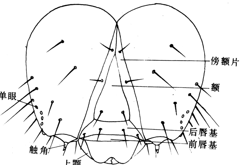图4 蛾类幼虫头部正面观