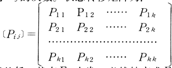 在害虫测报中,首先把种群动态划分为有限个(或可数个)两两互斥事件E1E2,……E状态,每个种群动态的状态是生物与非生物因子综合作用的结果,故可视为该动态系统由状态E()i、经过一次转移到状态E(k+1)的概率P,只与在第k次发生的事件有关。由某状态经一次转移到另一种状态,称为一步(一重)转移,余依此类推。转移概率实质上是一种条件概率,以一步转移概率为元素的马氏链转移矩阵,称为一阶转移矩阵,其一步转移概率公式为: