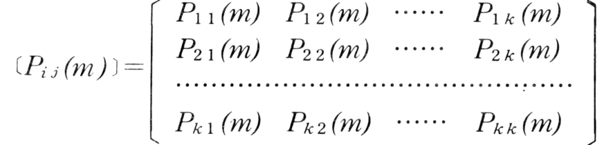 因条件概率≥0,转移矩阵中每一个元素≥0,m阶转移矩阵为: