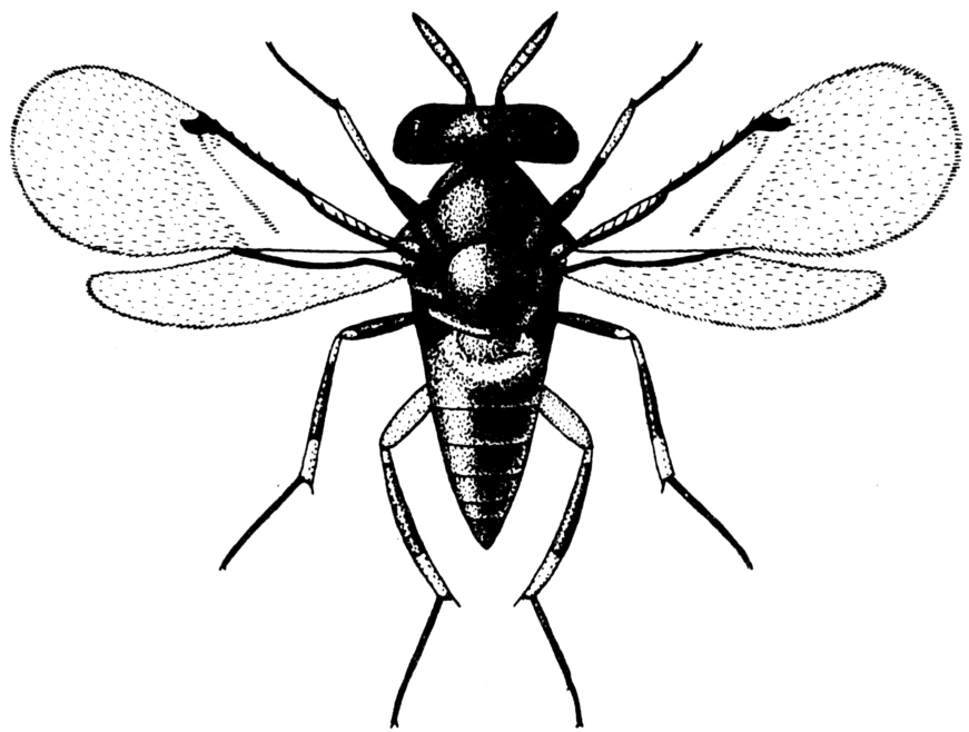 苹果绵蚜的重要寄生性天敌昆虫,别名日光蜂。学名Aphelinus mali(Haldeman)。膜翅目,蚜小蜂科。广布欧、美等40多个国家,对苹果绵蚜有显著的抑制作用。中国山东青岛、烟台和辽南果区,曾作过繁殖利用研究,在生产上取得显著效果。形态特征雌蜂体长1.2毫米,翅展2.3毫米,黑褐色;腹基部、有时腹末端黄色,无金属光泽。